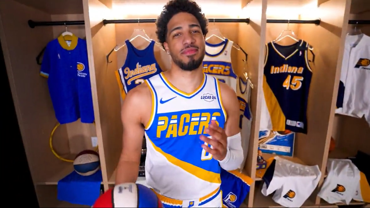 The Pacers did none of that. They nailed it this year with what they are calling the Moments Mixtape jersey (and court!). It is, as the Pacers say, "A remix of fan favorite uniforms reimagined in white and royal blue to reflect a new moment of Pacers basketball."